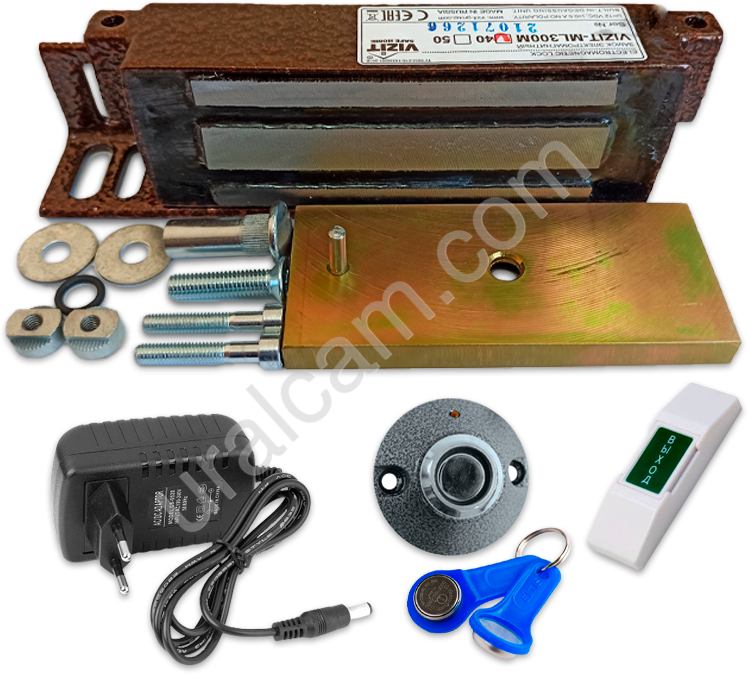 Важно! При необходимости установки комплекта на улицу, рекомендуем заменить пластиковую кнопку на металлическую (+550,00 рублей), ![]() Электромагнитный замок комплект. Доступная цена.