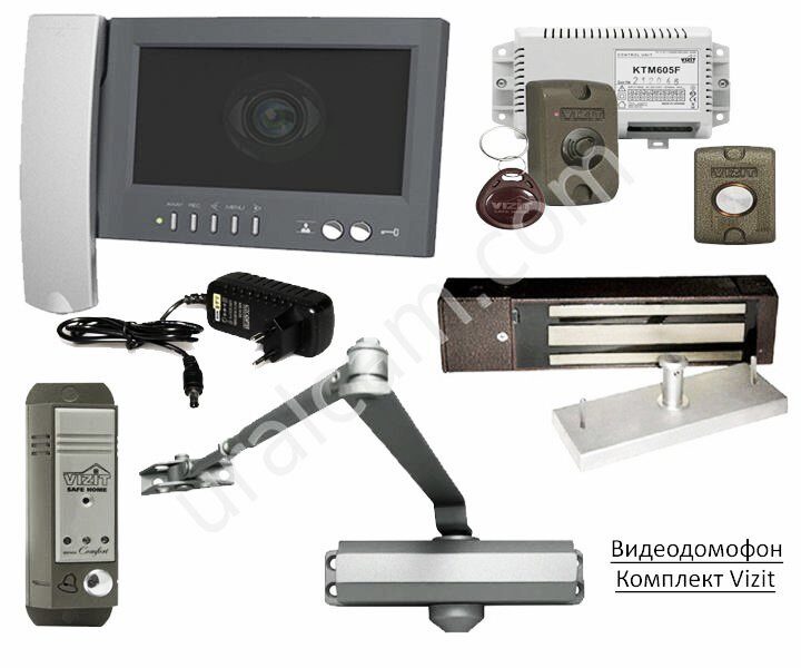 VIZIT-M457МG - цветной домофон с встроенной функцией памяти на 64 кадра. Диагональ экрана 5,6" дюймов. BVD-403 CPL Вызывная панель в металлическом корпусе с встроенной инфракрасной подсветкой. Монтажный угол в комплекте. Электромагнитный замок Vizit ml300-40, сила удержания 300 килограмм (на разрыв) Считыватель электронных ключей RD-5F Контроллер KTM-605F Блок питания для домофона Металлическая кнопка выхода EXIT 500 Не копируемый ключ RF - 3.1 Универсальный дверной доводчик Vizit Ключ RF (RFID-13.56 МГц) обладает дополнительной встроенной защитой от несанкционированного копирования. Данный комплект сводит к абсолютному минимуму возможность создания копий ключей, что безусловно повышает уровень безопасности. ![]() Видеодомофон Vizit комплект. Домофон Визит комплект с замком.