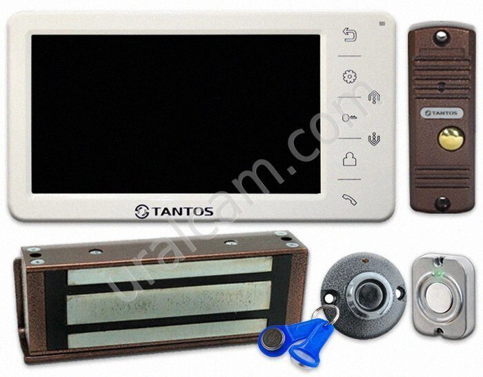 - Цветной домофон с сенсорными кнопками управления, диагональ экрана 7 дюймов, корпус из пластика белого цвета. (1 шт.)